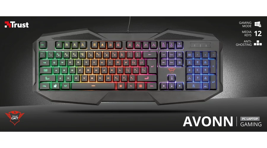 Trust Billentyűzet Gamer - GXT 830-RW Avonn (RGB LED háttérvilágítás; USB; fekete; magyar)